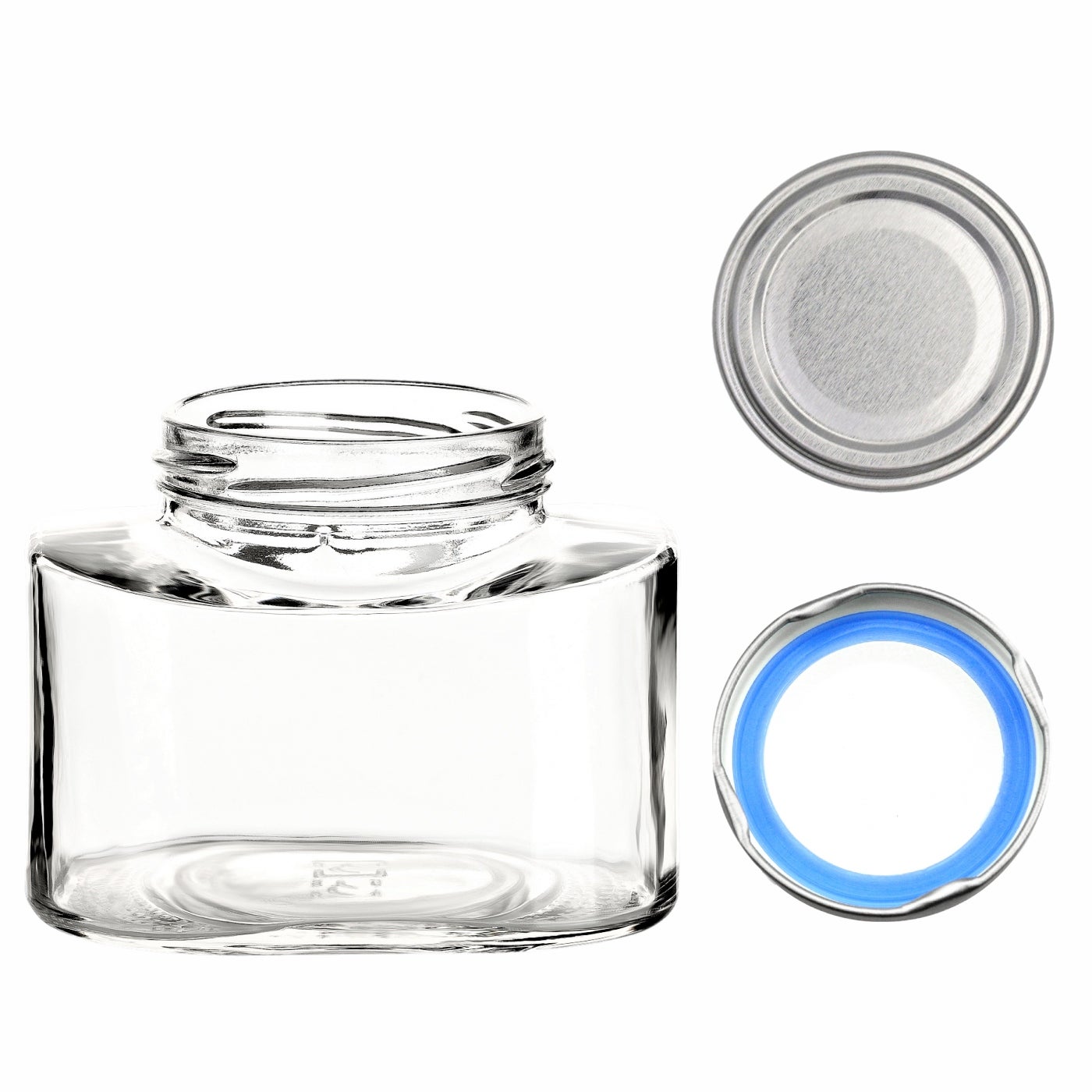 Durch die ovale Grundform mit zwei teilweise geraden Seiten lassen sich die Gläser besonders gut etikettieren. Durch die Deckelauswahl bieten sich viele Kombinationsmöglichkeiten, sodass das abgefüllte Produkt sehr gut zur Geltung kommen kann.