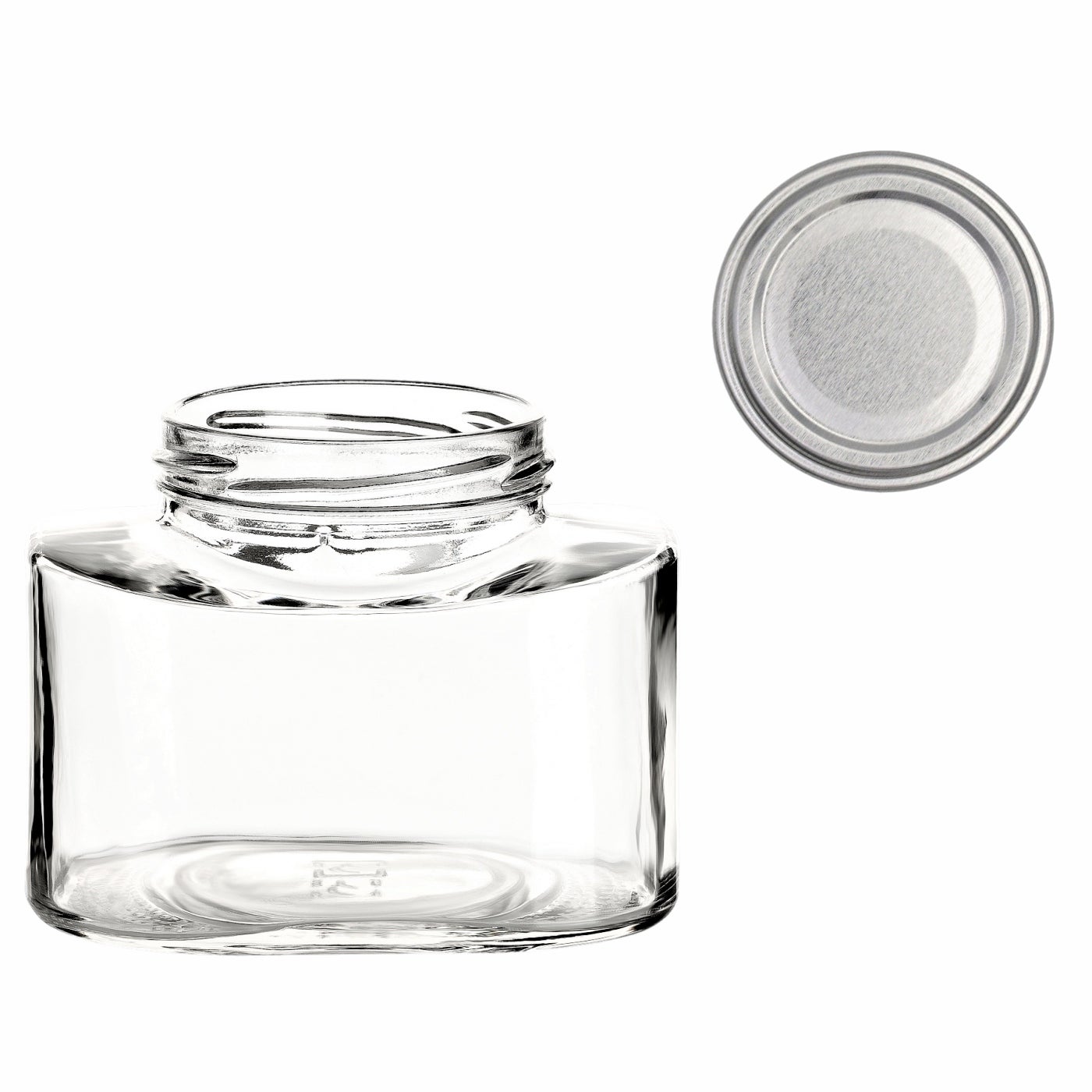 Durch die ovale Grundform mit zwei teilweise geraden Seiten lassen sich die Gläser besonders gut etikettieren. Durch die Deckelauswahl bieten sich viele Kombinationsmöglichkeiten, sodass das abgefüllte Produkt sehr gut zur Geltung kommen kann.