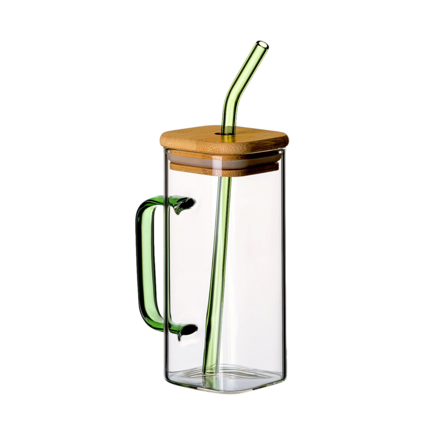 350 ml Trinkglas mit Henkel GRÜN, Deckel und Strohhalm
