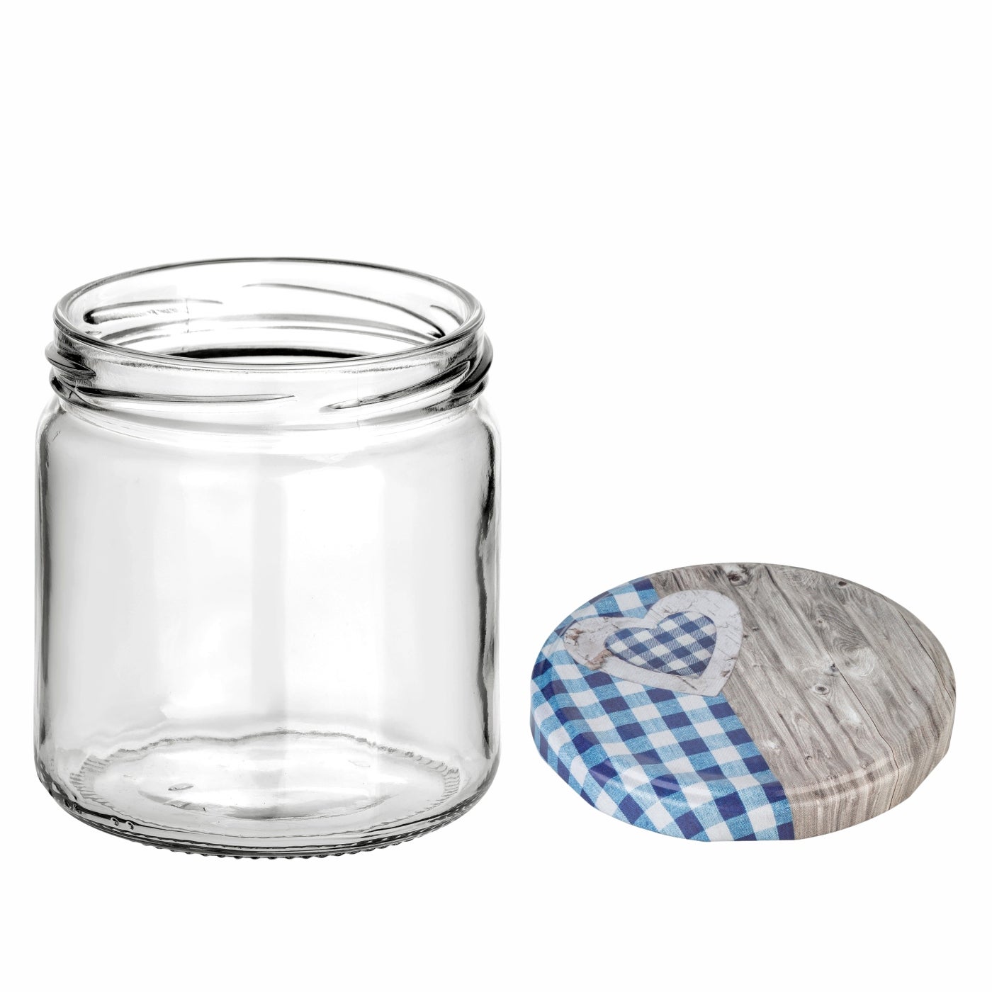 Produktinformationen "500g Honigglas für TO mit Deckel Herz Blau"